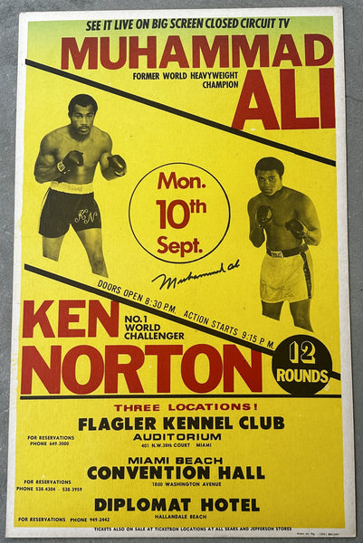 Offered here is an original, closed circuit poster for this event which has been signed by Muhammad Ali.