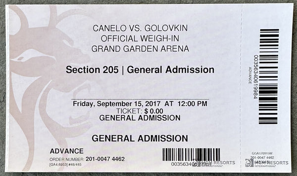 ALVAREZ, CANELO-GENNADY GOLOVKIN ON SITE WEIGH-IN FULL TICKET (2017)