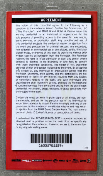 Offered here is an original Press Credential for this fight which has been signed by Saul "Canelo" Alvarez.