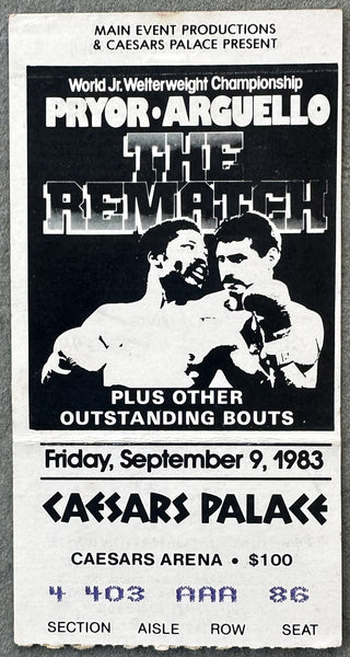 HISTORY: Alexis Arguello fought Aaron Pryor on September 9, 1983 for the World Jr. Welterweight Championship. Pryor knocked Arguello out in the 10th round to successfully defend his title.