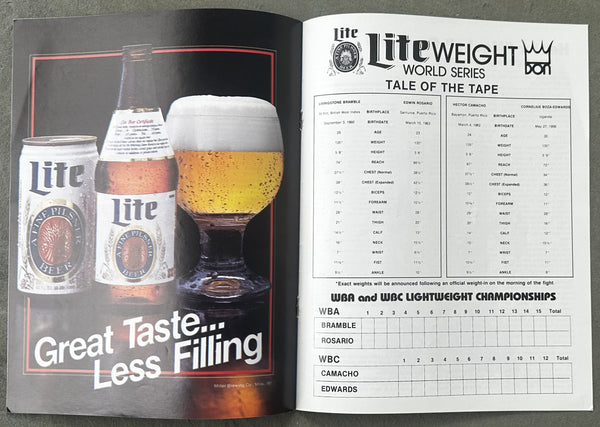 CAMACHO, HECTOR-BOZA EDWARDS & LIVINGSTON BRAMBLE-EDWIN ROSARIO OFFICIAL PROGRAM (1986)