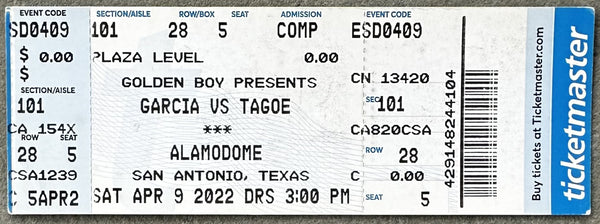 HISTORY: On April 9, 2022 at the Alamodome in San Antonio, Texas lightweights Ryan Garcia and Emmanuel Tagoe fought in the featured bout. Garcia won a unanimous 10 round decision.