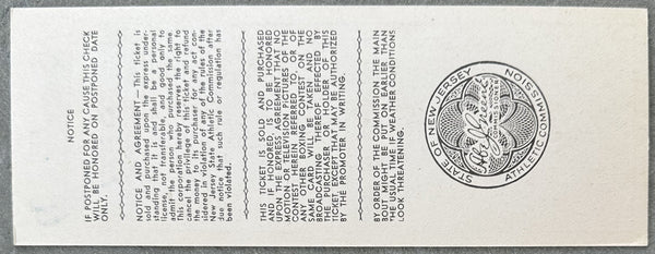 Offered here is a very rare, original, on site, full, unused ticket for the originally scheduled date.