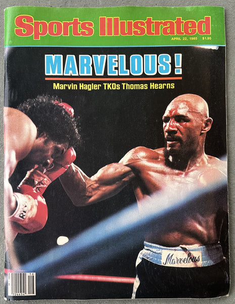 FULL DESCRIPTION: This is an original, April 22, 1985 Sports Illustrated which pictures both fighters on the cover. 106 pages complete. Tight binding. Clean inside and out. Crease on back cover. No tears. 8 1/4" x 10 3/4."