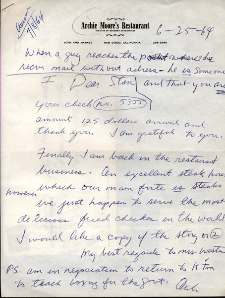 MOORE, ARCHIE HAND WRITTEN LETTER (1965)