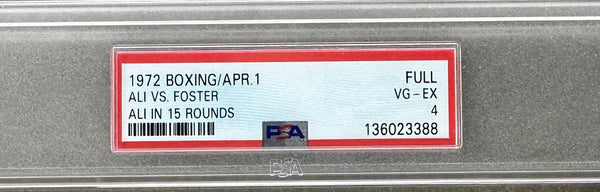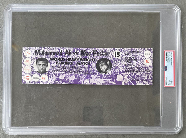 HISTORY: On April 1, 1972 at Nippon Budokan Hall in Tokyo, Japan former world heavyweight champion Muhammad Ali fought tough Mac Foster in the main event. Ali predicted a 5th round knockout, but Foster forced the fight to a decision, easily won by Ali in 15 rounds. Offered here is a rare, high grade, full, unused ticket for this event. Authenticated by PSA/DNA and graded VG-EX 4.