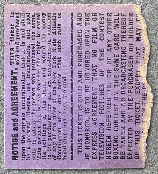 FULL DESCRIPTION: This is an original, on site, ticket stub which names the date and venue and includes a section, row and seat number. Bold color and print. Not creased. clean front and back. 2" x 2 1/4"