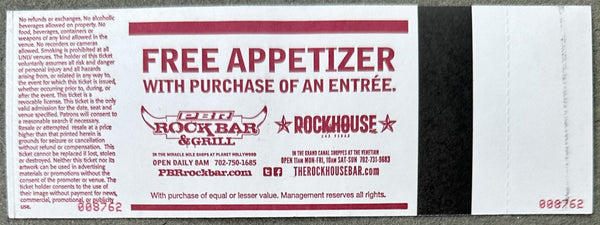 FULL DESCRIPTION: This is an original, on site, full, unused ticket which names the fighters and includes a section, row and seat number. Bold color and print. Clean front and back. Not creased or torn. Stub firmly attached. 2" x 5 1/2."