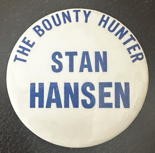 Offered here is an original, souvenir pin of Stan Hansen The Bounty Hunter.