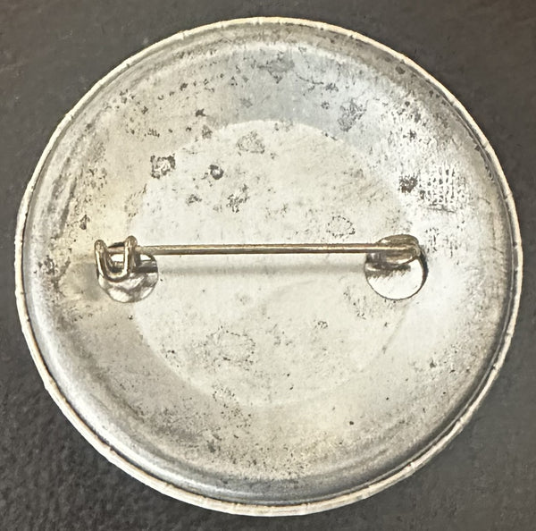 FULL DESCRIPTION: This is an original, metallic souvenir pin. Bold color and print. Pin firmly attached to reverse. No dents or scratches. Clean. 2" diameter.
